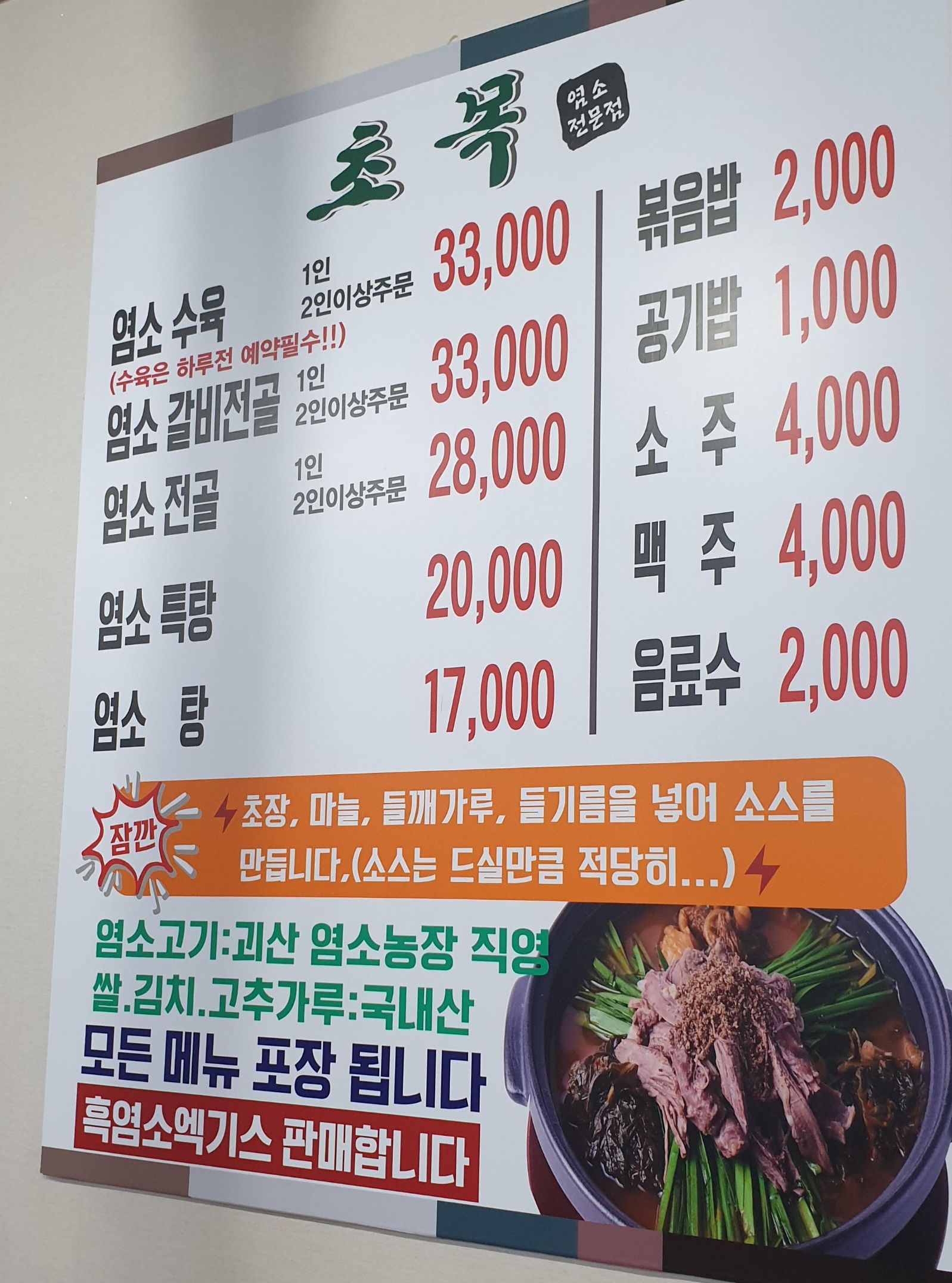 이곳 염소탕과 염소고기를 먹으면