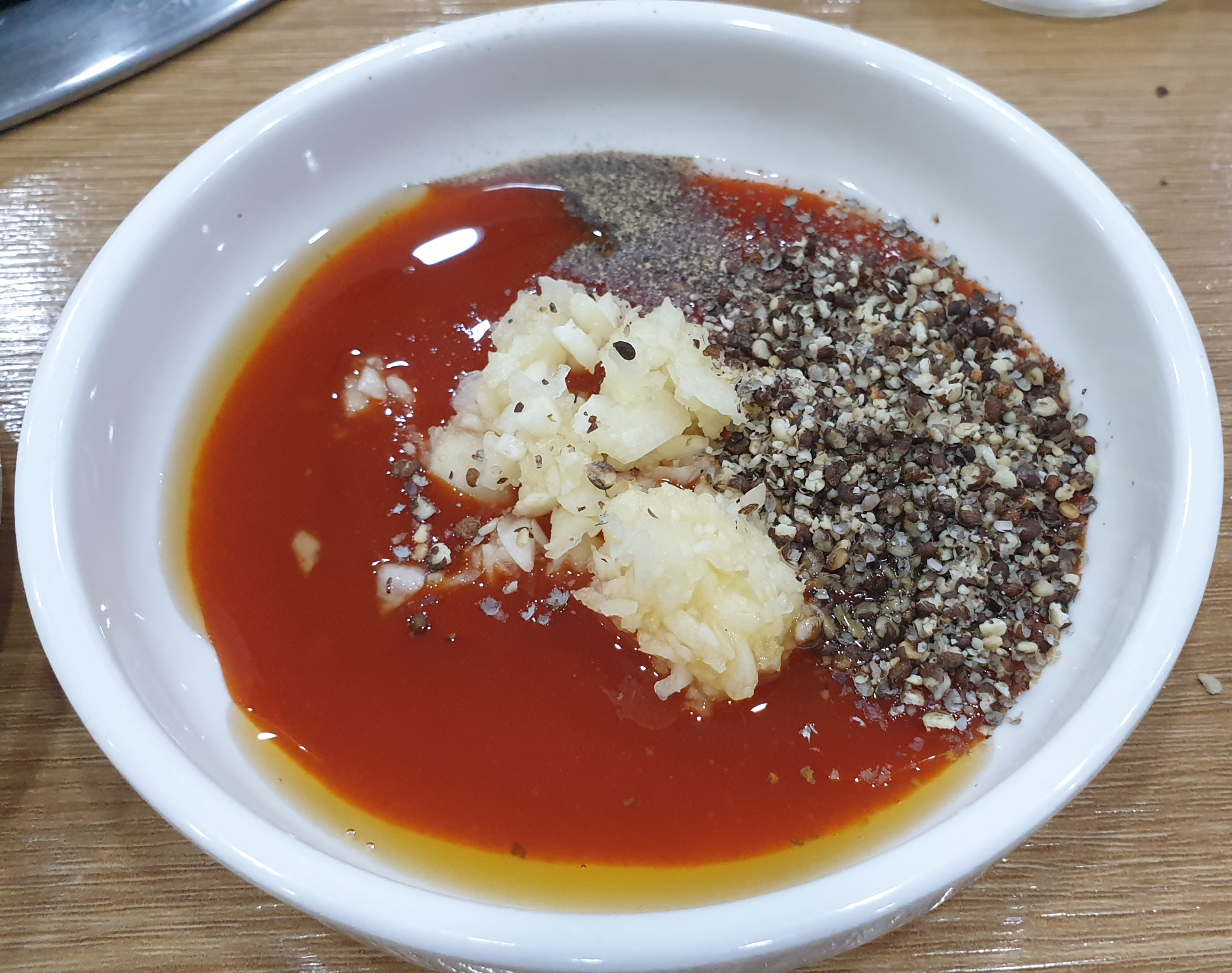 초장, 참기름, 다진 마늘