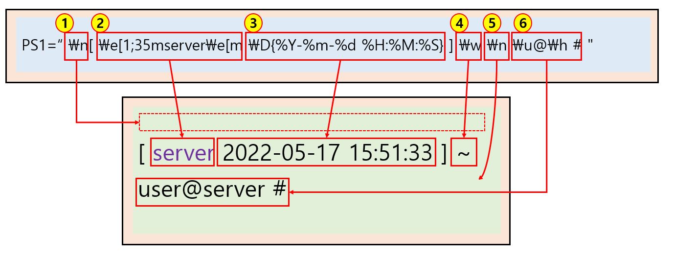 리눅스 사용자 프롬프트 PS1 내용 설명